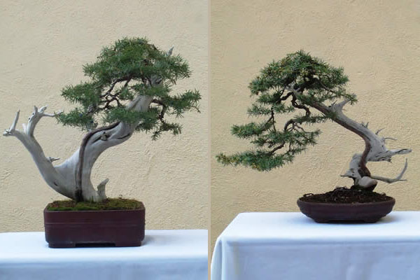 Outro processo para criar um SHARI, cujo efeito se pode ver nas duas fotos mais abaixo, é o TANUKI, a que eu chamo "falso Shari" e consiste em utilizar madeira morta em simbiose com uma árvore muito jovem, neste caso o zimbro de agulhas. Simples e com bons resultados! Com o tempo tudo se compõe e o projeto ganhará naturalidade.