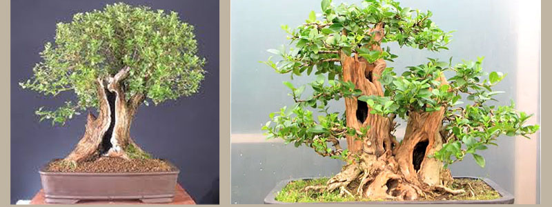 Na natureza só as árvores muito velhas mostram esses "traumas" o que no Bonsai seria coisa impossível de acontecerem devido à proteção de que gozam ao nosso cuidado e longe dos caprichos da natureza agreste.