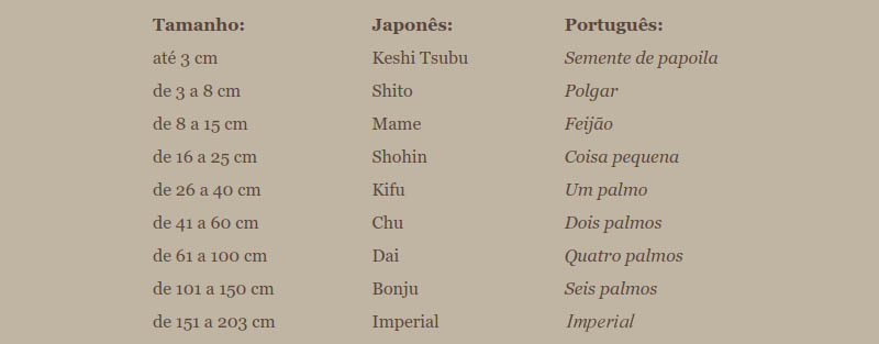 ☯ Mas como são os Bonsai classificados e denominados, quanto a tamanho, no País do Sol Nascente?