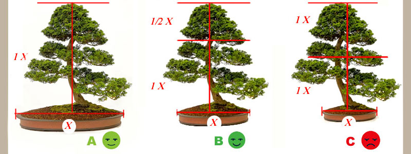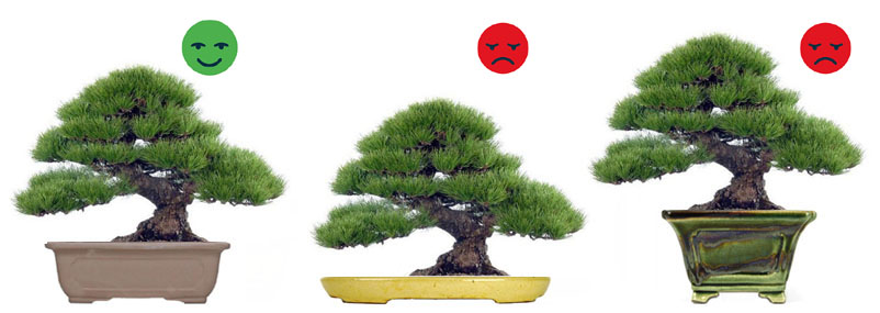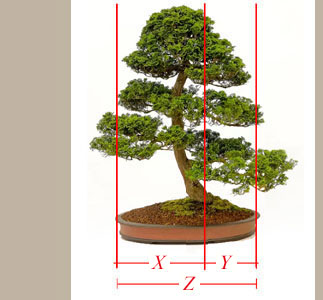 que levar em conta o estilo do Bonsai, a forma e o volume da copa, a massa e a profundidade das raízes, a